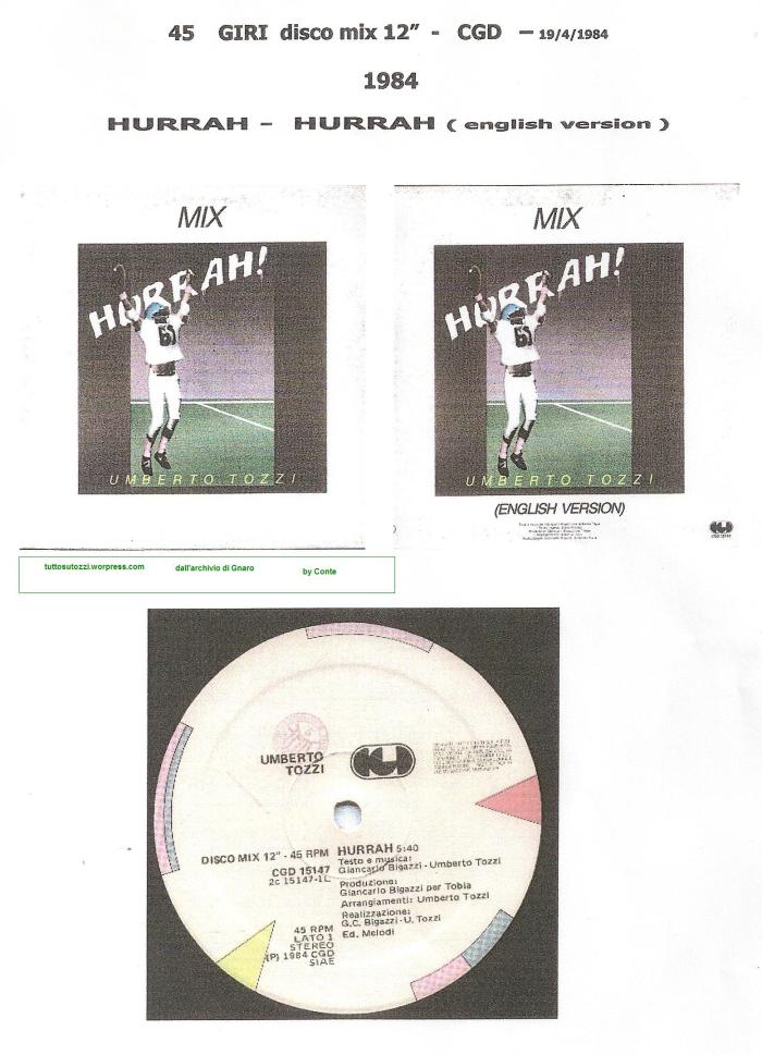 1984 HURRAH 45 giri