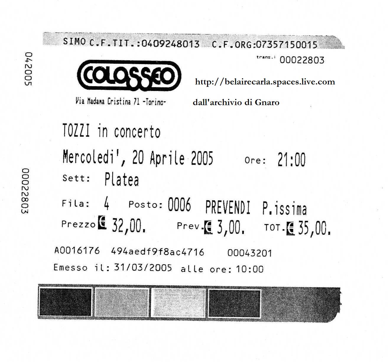 Biglietto Teatro Colosseo 20.04.2005