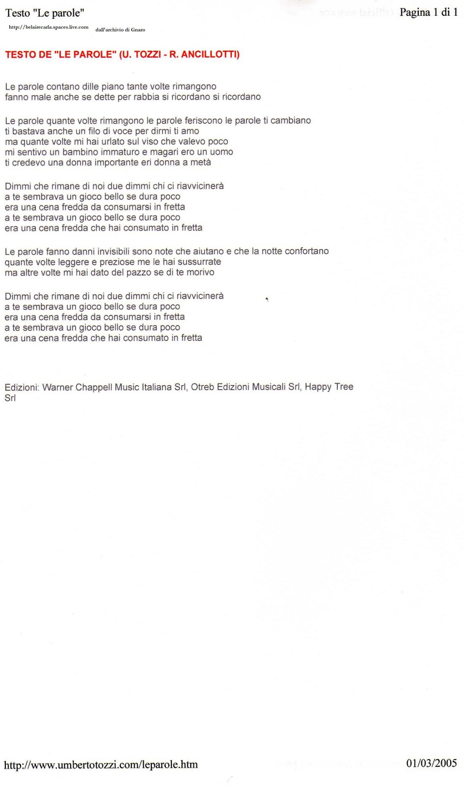 testo Le parole