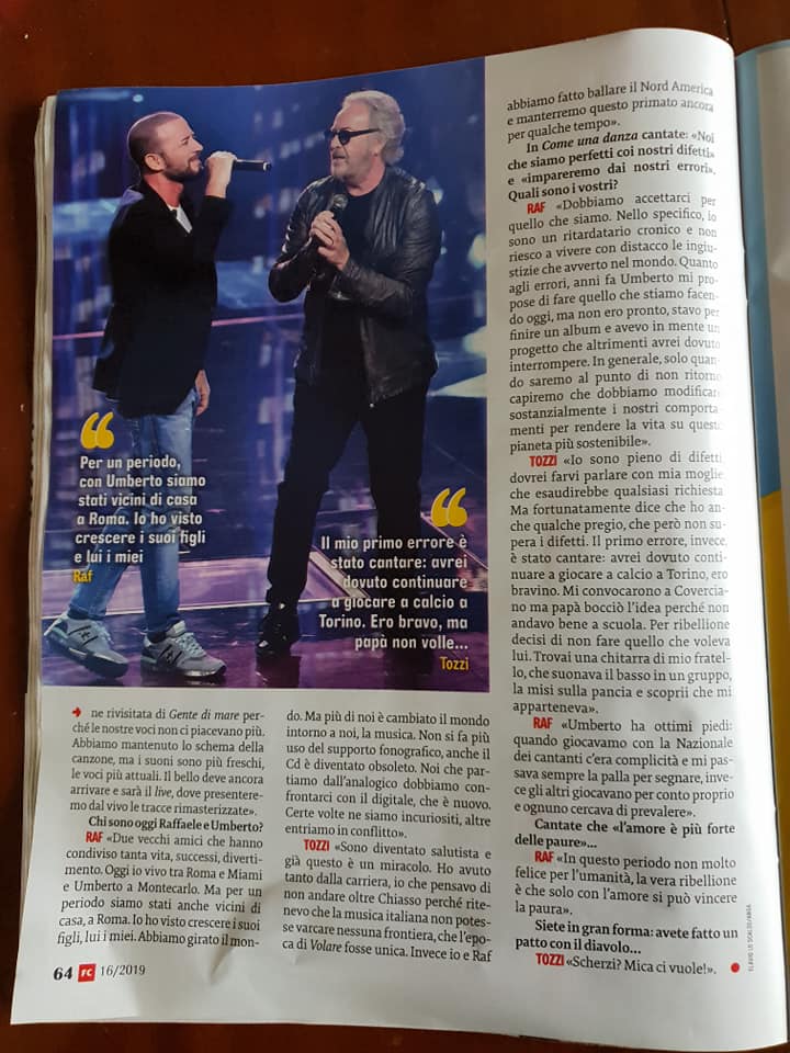 Raf e Umberto Tozzi su “Famiglia Cristiana”