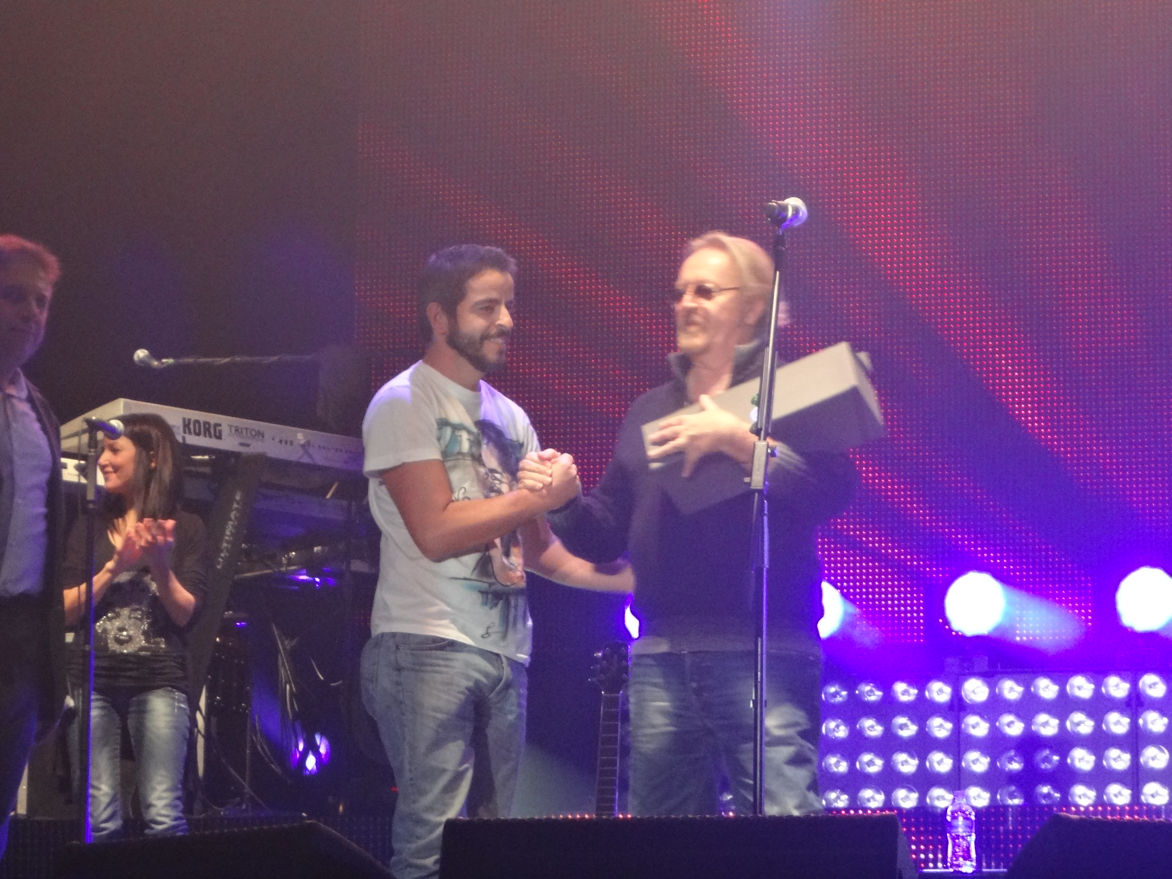 Umberto Tozzi premia Ale (gnaro) come “Mister transenna”, riceve un regalo dai fans spagnoli ed estrae i nomi di coloro che saliranno sul palco durante il concerto.