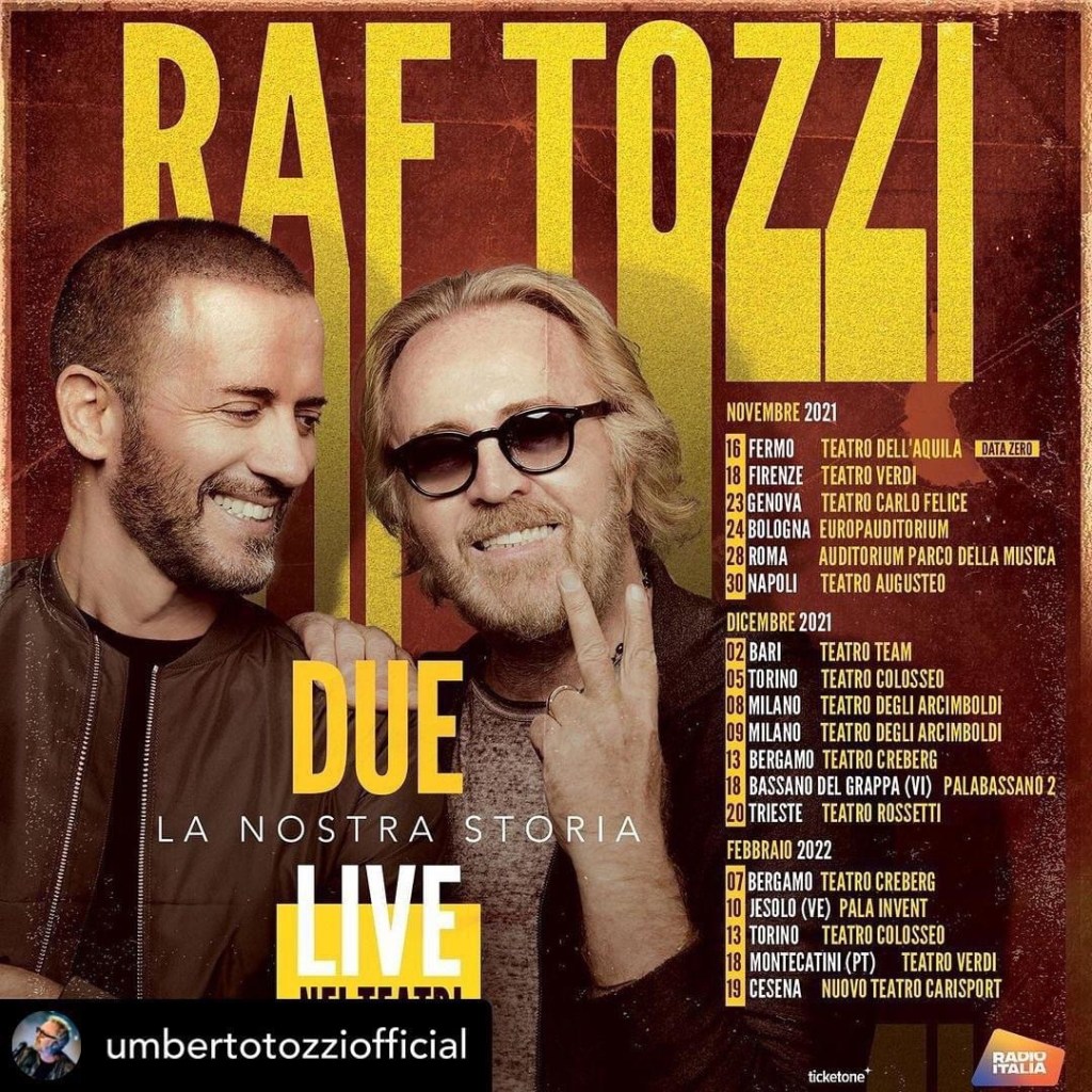 #Raf #UmbertoTozzi al via il 16 novembre il tour “DUE – LA NOSTRA STORIA” live nei teatri con capienza al 100%