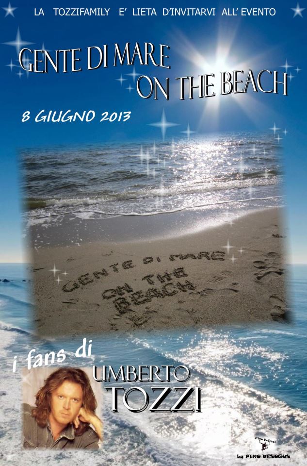 Voglio ringraziare di cuore la Batozzo Family che con molta efficienza ci ha aiutati a scegliere la location, ringrazio Pino, Tommy e Gigi per la loro grande disponibilità e generosità a suonare per noi tutta la sera, ringrazio Pino per la bellissima locandina, la foto della spiaggia non è un fotomontaggio, è orginale! Un’amica di Pino ha scritto su di una spiaggia Gente di mare on the beach e poi l’ha fotografata e mandato la foto a Pino, complimenti davvero!!