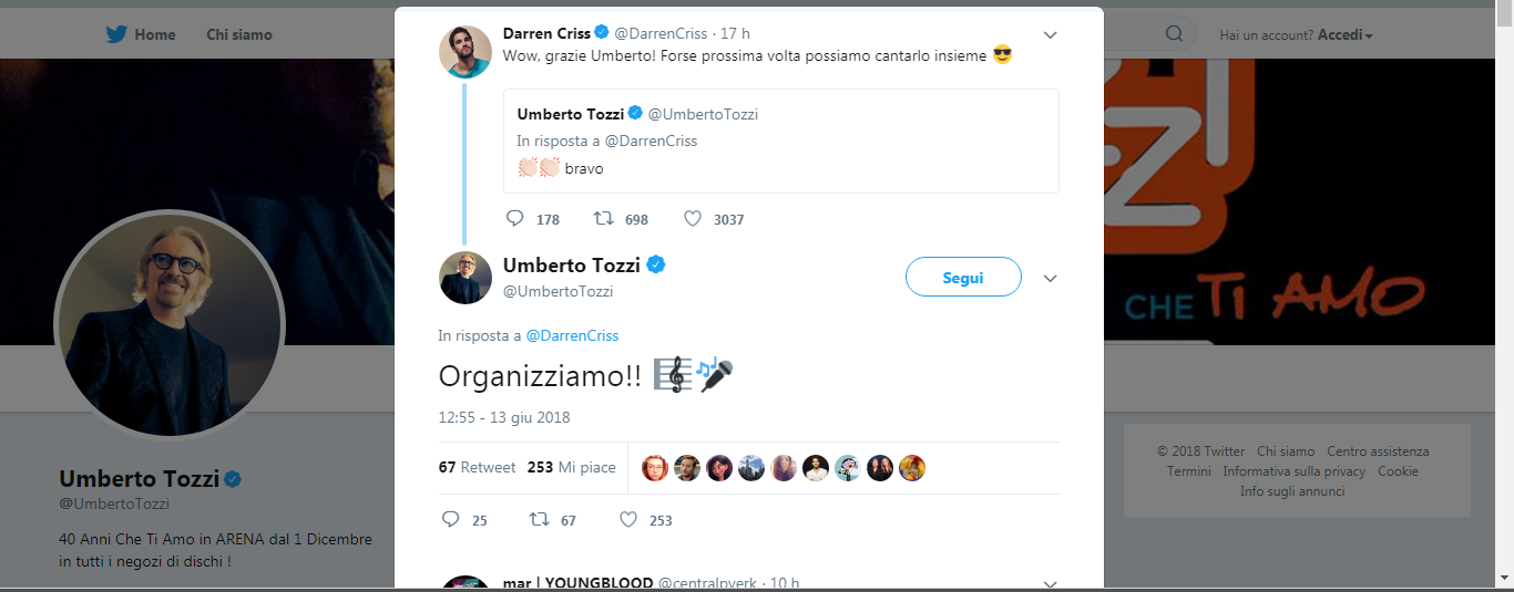 Umberto Tozzi a Darren Criss: Organizziamo!!